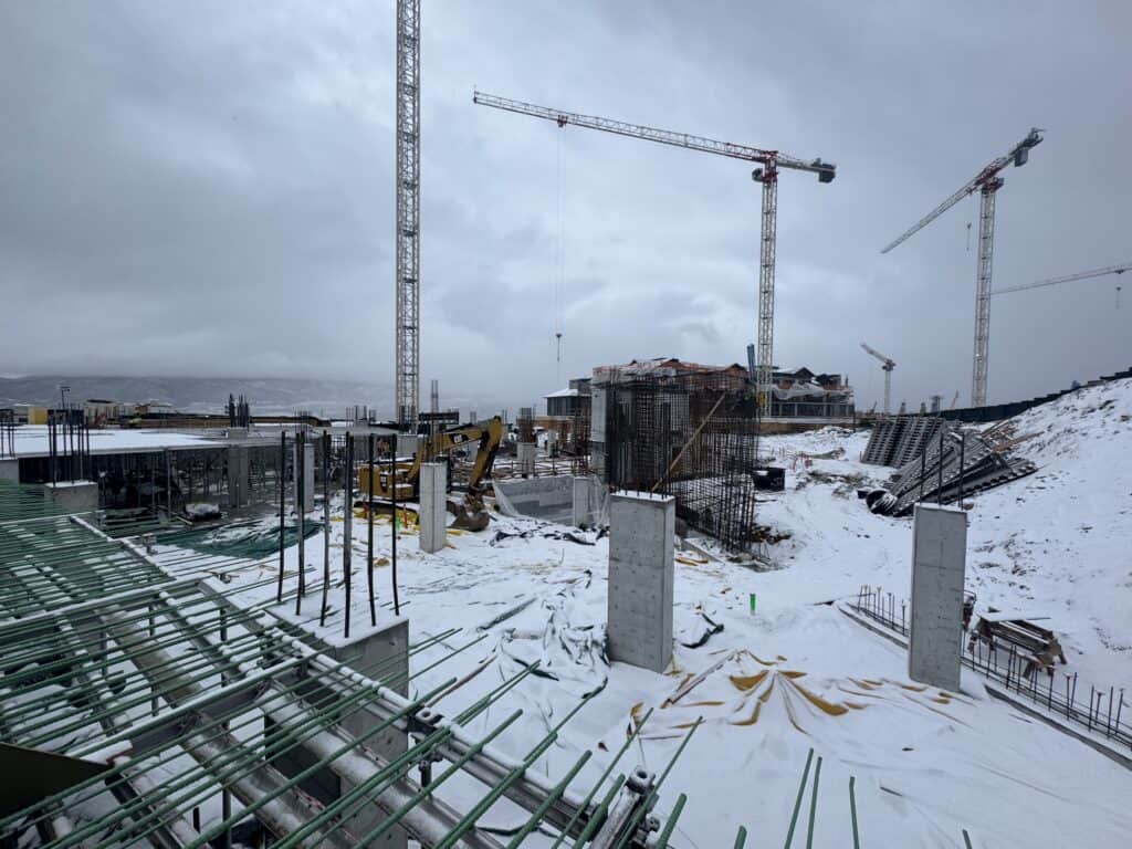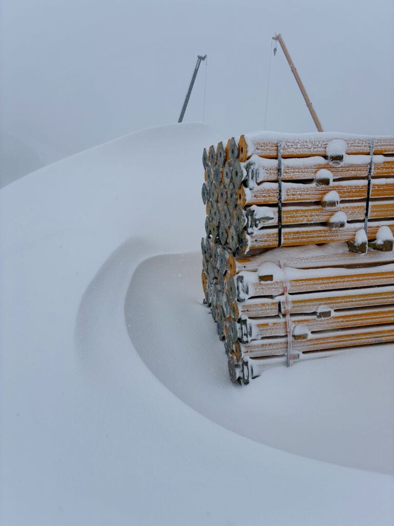 After one snowstorm on Powder Mountain, our footings were buried under 7 feet of snow. Kyler Welch, shown here, is working to locate the end of the snow tarps.