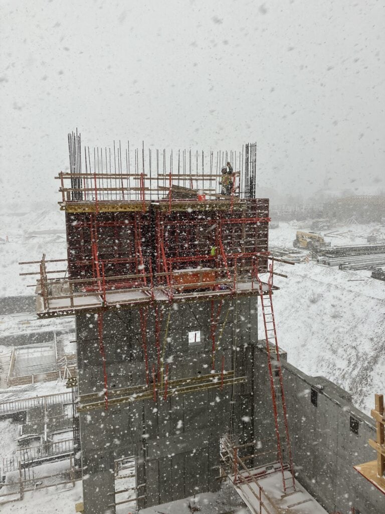 We received well over a foot of snow on site, with high winds for a couple of days. It was quite the storm!